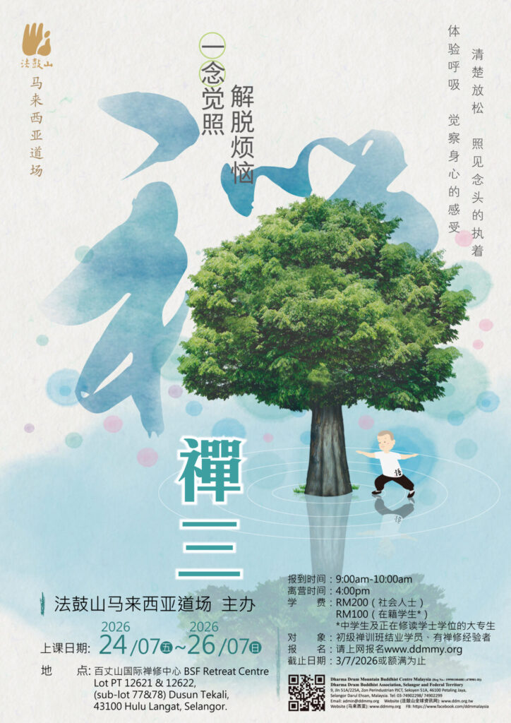 课程内容:禅坐、八式动禅、经行、法师开示等。