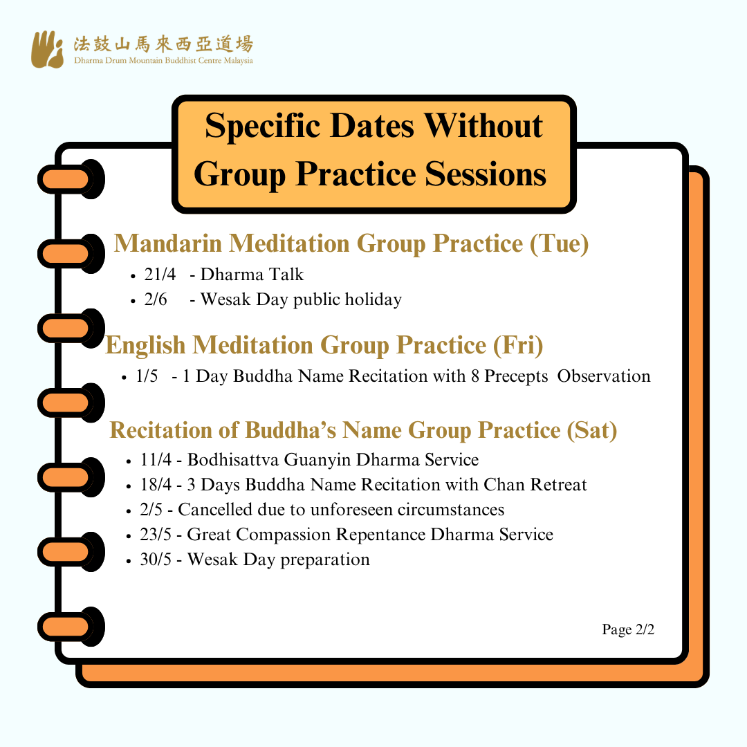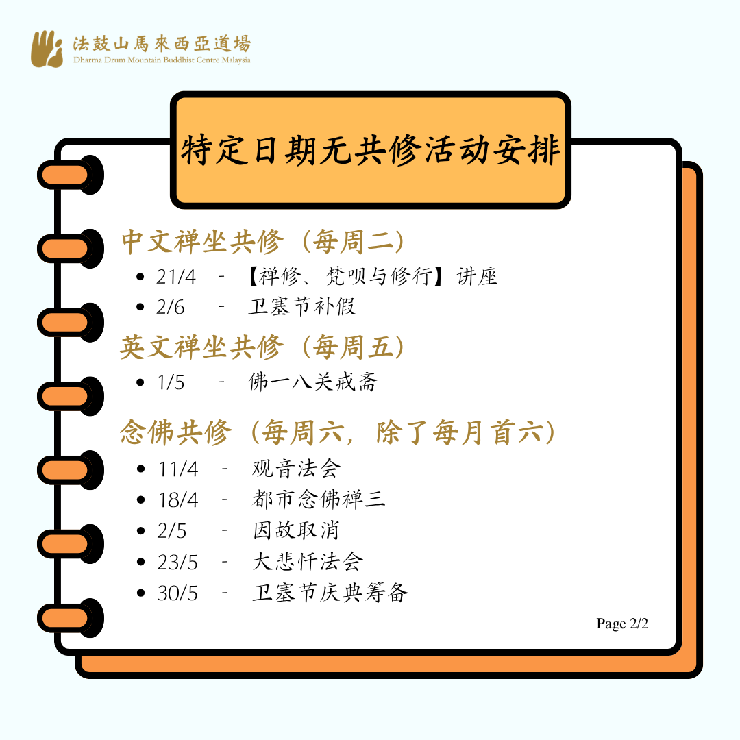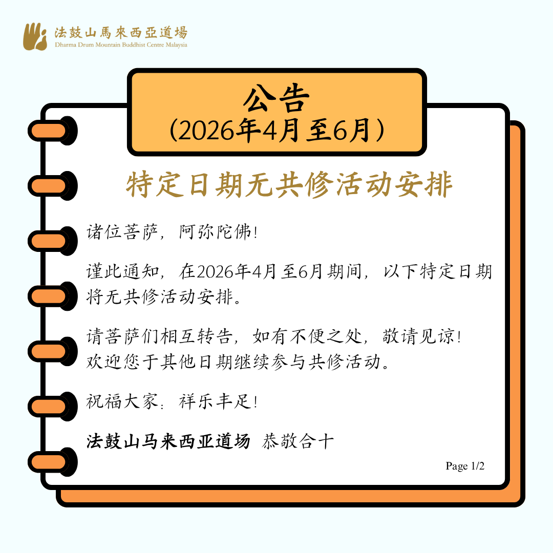 【公告】2026年4月至6月特定日期无共修活動安排