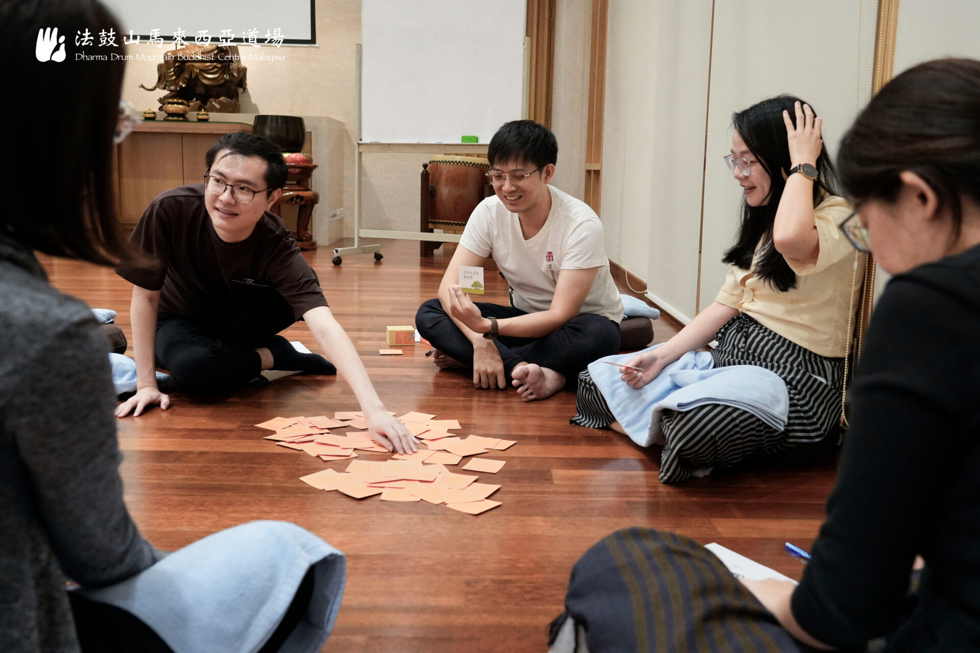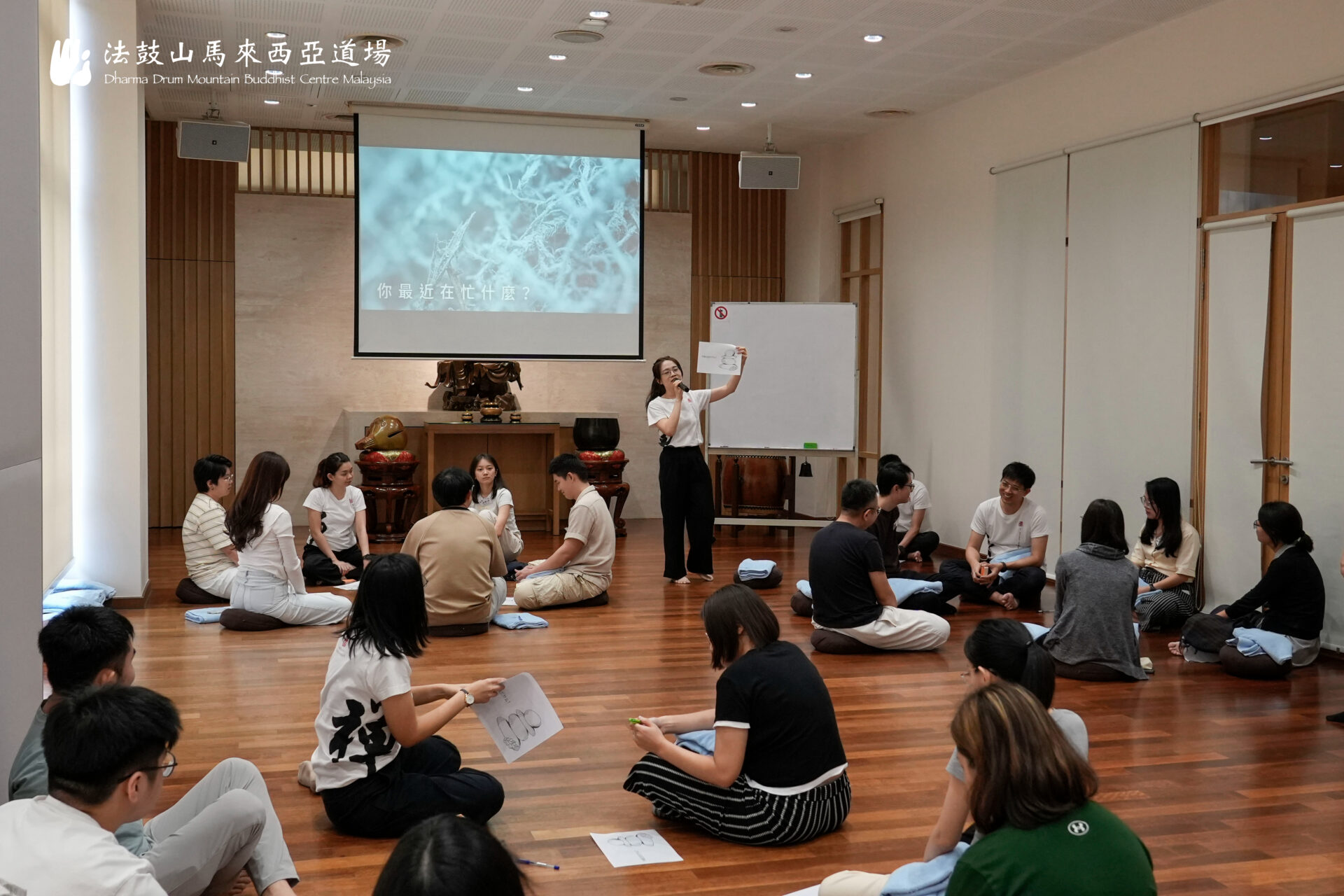 法鼓山马来西亚道场4月11与25日举办两场【盲盒·人生】系列工作坊。首场工作坊吸引了近40位青年参与。工作坊以人生如盲盒为主轴,在游戏与禅修中让学员觉察自己在开盲盒时的快乐层次,拆解烦恼生成的过程,并引导青年透过 “五蕴”调节自己的身心。