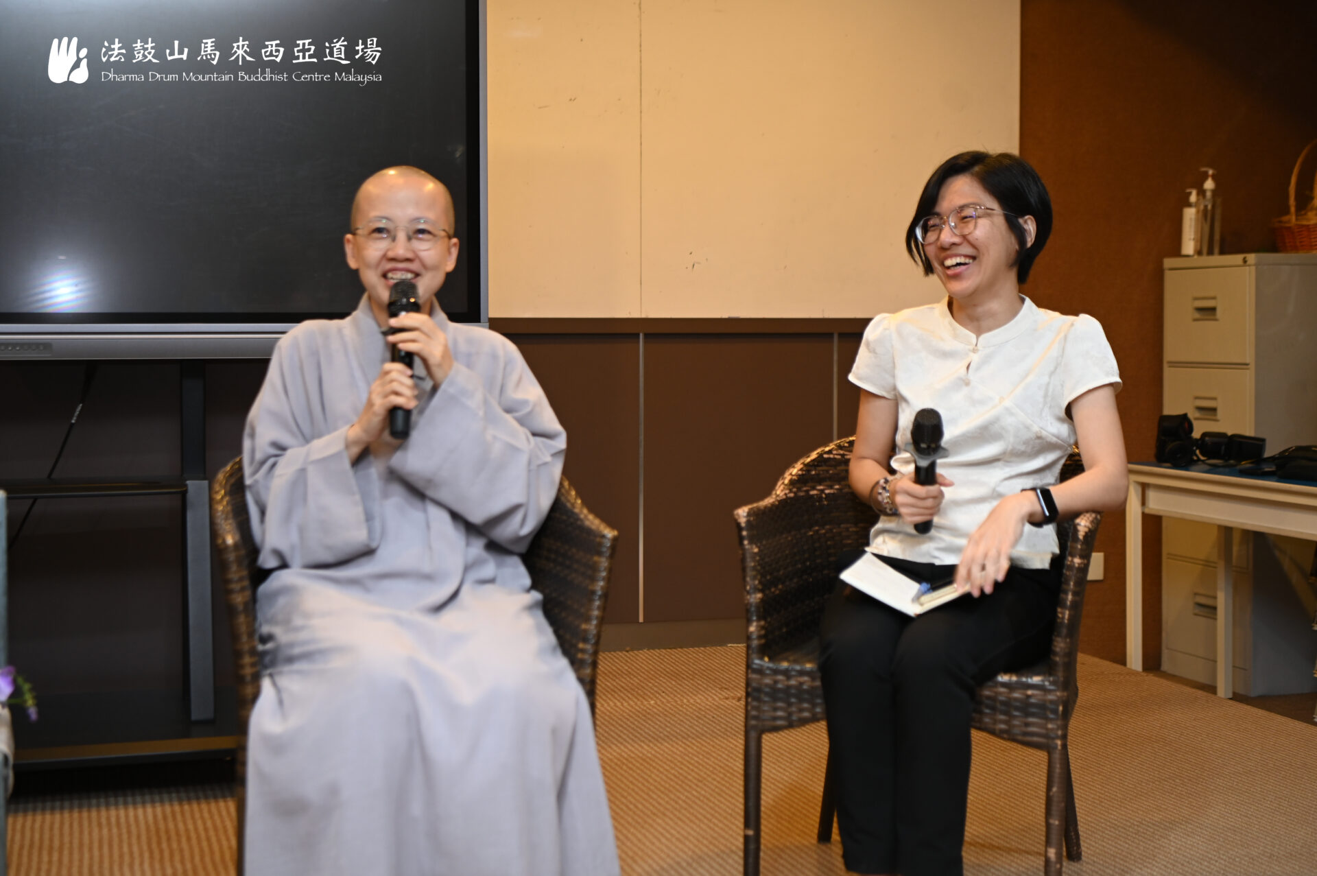 4月11日晚,关丹培才华文小学、光华华文小学与护苗教育工作室联合举办【一场心与心的交流之约】座谈会,由杜晓薇主持,法鼓山马来西亚道场监院常藻法师,以及爱心树家庭成长中心创办人兼马来西亚注册与执证心理辅导师林秀枝(熊妈妈)应邀对谈,以轻松幽默的方式展开交流,从汉传禅法与心理辅导的不同角度,围绕现代人常见的身心议题,带出贴近生活的观察与回应。