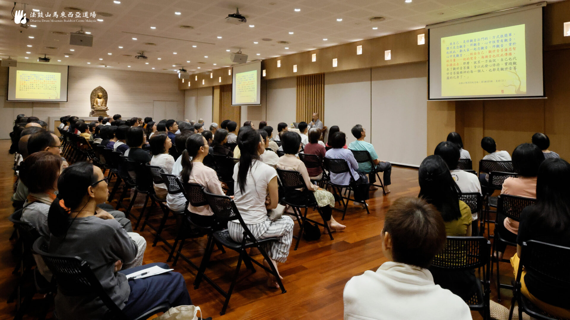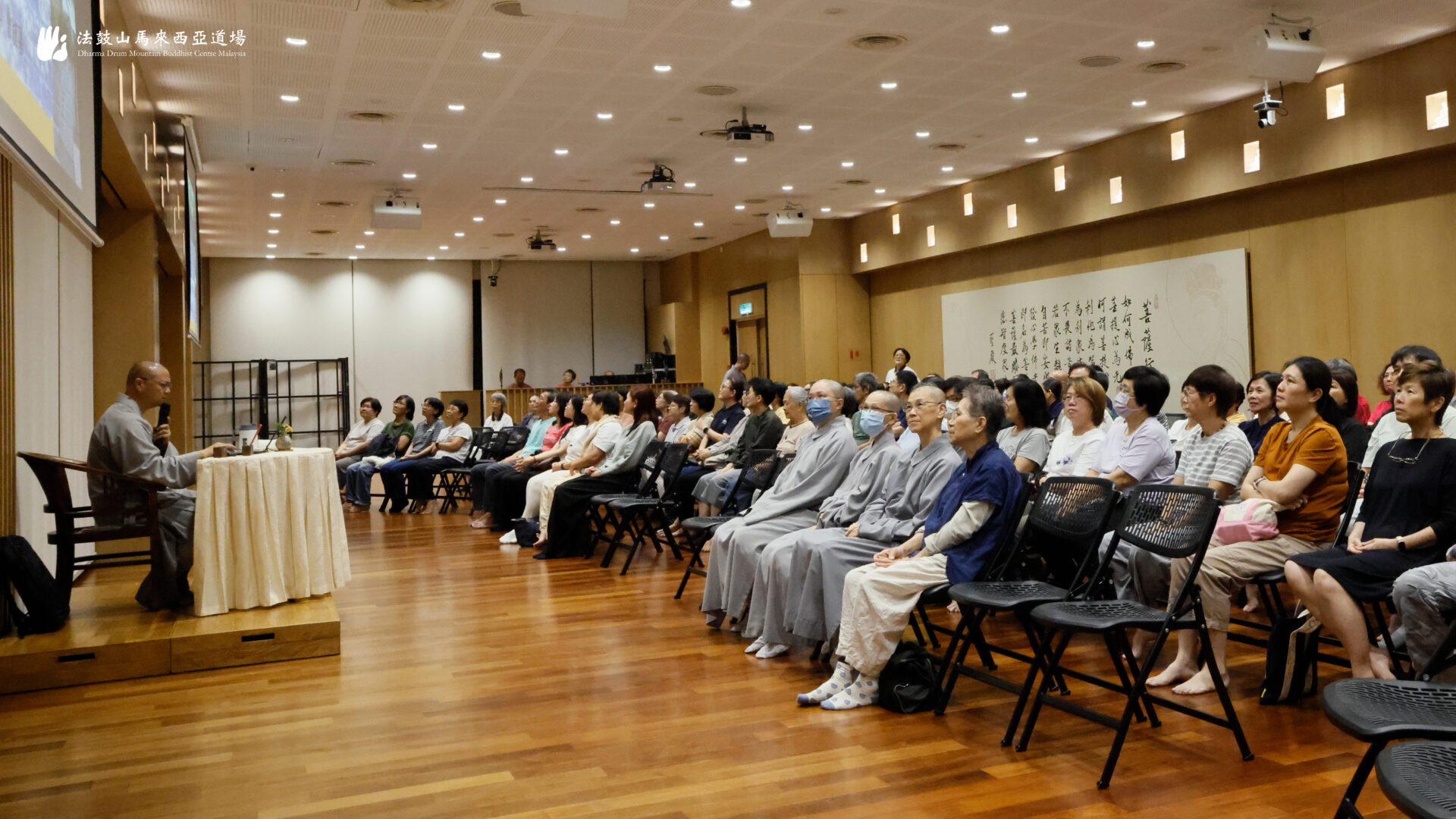 法鼓山马来西亚道场于4月21日举办【禅修、梵呗与修行】讲座,礼请法鼓山禅堂板首常乘法师主讲,逾百位信众出席聆听。常乘法师以轻松幽默的方式,带领大众认识梵呗的起源、功能与特色,并分享梵呗如何成为修行的重要助缘。