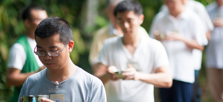 午后,维那演香法师带领大家进行佛一仪程:赞佛、绕佛、坐念、止静、拜佛、晚课和拜忏。大众以恭敬心及感恩心齐声持诵,圣号弥漫整个坛场;氛围肃穆庄严,如置身在佛国净土中。