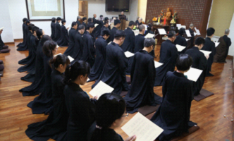 期间戒子们很有福报能聆听师父于过去一次带领念佛禅七,讲解关于感恩、忏悔、发愿和回向的开示。师父说忏悔和发愿是紧密相连的,只有诚恳的忏悔,才有发大愿的弘力。在日常生活中,若能以慈悲心,感恩心和惭愧心来面对一切人事物,人间净土就可实现。