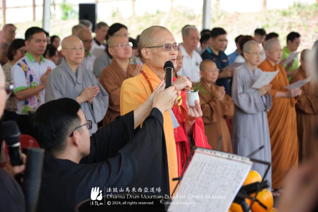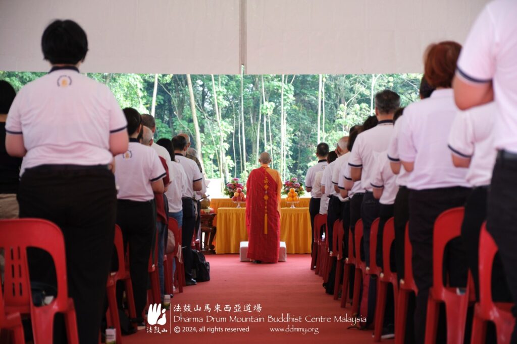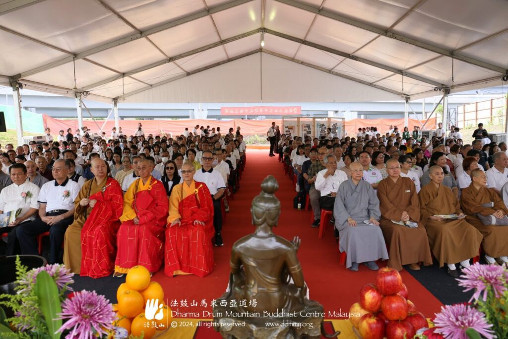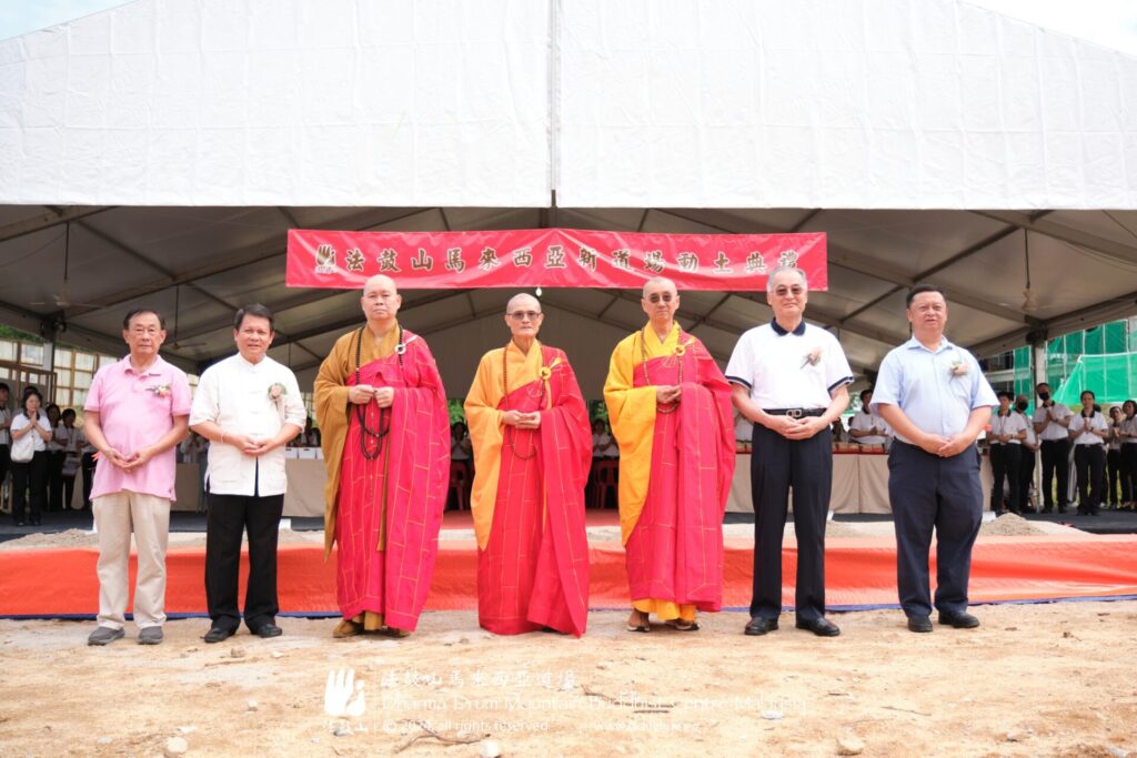 动土典礼出席的嘉宾包括:法鼓山方丈和尚果晖法师、马佛总雪隆分会主席明吉法师、马来西亚佛学院院长兼普照寺住持继程法师、法鼓山僧团寺院管理副都监果理法师、佛光山新马泰印教区总住持觉诚法师、巴生龙华寺住持传智法师、般若学舍妙赞法师、阿利雅精舍佛教会住持殊满家乐法师、马来西亚佛教发展基金会主席洪祖丰、马佛青署理总会长陈赞欣、法鼓山护法总会总会长张昌邦,及多位来自世界各地的佛教团体僧众、领袖代表与护法大德,齐聚一堂,共同见证了这历史性的重要时刻。