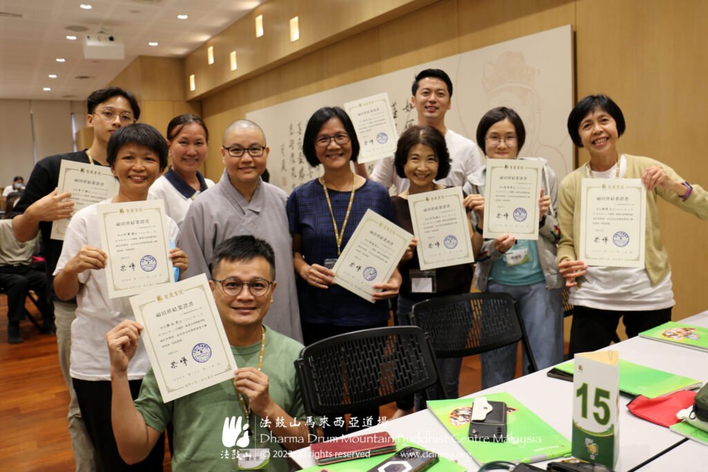 “初发心不难生起,要发起恒常心才是真正的考验。”法鼓山马来西亚道场监院常藻法师叮咛学员们在学佛的路上不可能会一直一帆风顺的。若起退心,切记不要被逆境的种种现象牵着走,应当提醒自己的生命该朝往哪一个方向,透过六度万行来修学佛法、实践佛法、体验佛法。 “因感动于他人成就我们来学佛的因缘,我们很自然而然地会回馈与奉献我们自己,成就他人也有因缘来学佛,因此培福修慧是学佛的一体两面,期许日后在道场会经常见到诸位来学佛和当义工。”