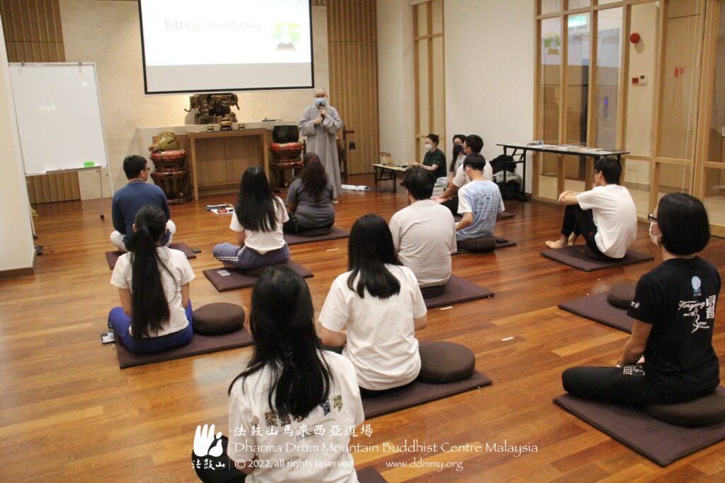 在最后一天的课程演明法师简单说明打坐时该注意的事项(环境、服装、时间和打坐的用具)、辅助坐姿、坐前和坐后需要的运动、前方便及按摩。接着放松大家一同体验了十分钟的禅坐,学习让习惯向外发散的心拉回到当下。虽然是首次的打坐体验,但教室里的氛围却非常安定。