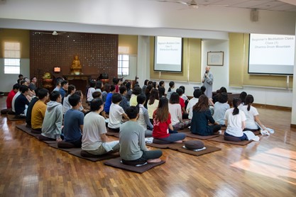 和法鼓山的因缘起源于2012年的中文初级禅训班。当时的我对于自己的未来感到极度迷茫,内心苦闷,情绪容易波动,我很想为自己的心找一个出口,所以选择学习禅修。报名禅训班后不久,爸爸突然往生,顺势将我推向了学佛这条道路。