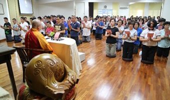 后来才知道知客组是接待信众的义工,它的挑战在于我们面对的信众来自四面八方,你不知道对方会问什么、想要了解什么。由于刚接触道场不久,道场对我而言还是很陌生,在所知有限的情况下如何去服务大众?很简单,我没有想太多,可以做多少则多少,知道多少就分享多少,这就是圣严师父说的:”会的就做,不会的就学。学中做,做中学。”