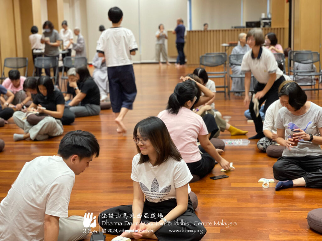 当天,义工菩萨们齐聚一堂,共同欢笑互动,玩游戏、设计水壶吊带,并一起观看【义工身影】回顾影片。影片中提醒大家,无论多忙碌,都不应忘记初心。正如聖严师父所说:“忙忙忙,忙得快乐;累累累,累得欢喜。” 大家的共同成就源自于无量劫前发下的同愿心,那就是将佛法的美好传递给更多人。