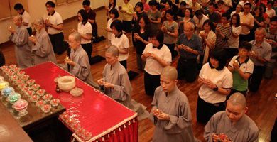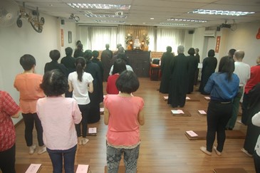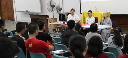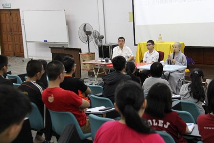 大家在禅堂集合后,法鼓山马来西亚道场监院常藻法师娓娓道来法鼓山的由来和历练,同时传达了法鼓山僧团的存在意义是为了满足我们众生的需要。紧接着的是周游道场,佛学会师生在法青的带领下参观了道场二楼和三楼的设备,包括瞻仰圣严师父的墨宝和法相。
