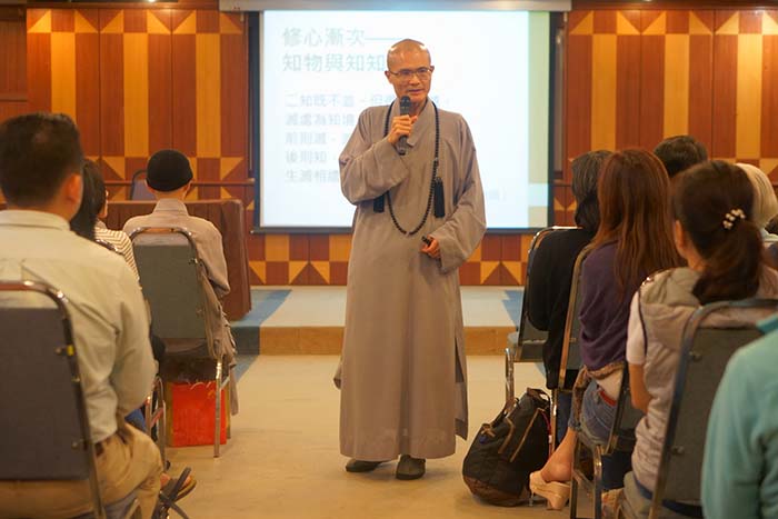 晚上则由常宽法师为大家上一堂关于师父的课——“圣严师父的悲愿”。曾担任师父侍者的常宽法师,与学员们分享他和师父之间的生活小故事。学员们从故事中感受到了师父的慈悲与智慧,还有师父如何善用他的生命实践佛法,也了解到师父一生在众多艰苦的环境下仍然精进用功、不忘学佛弘法的愿心。