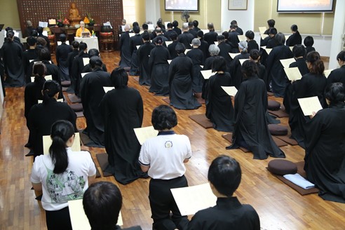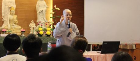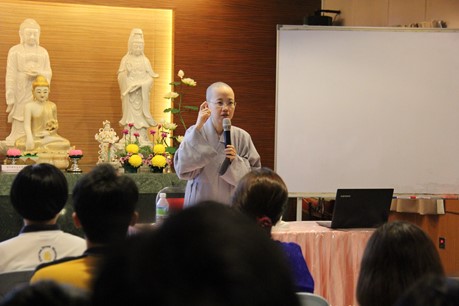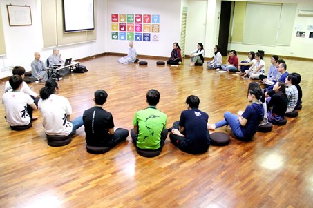 农禅寺监院果毅法师针对当天的主题「以出世的精神做入世的三宝事」开示说,曾经师父让我们沾光,但光不会永远在,除非有人努力发光。法师引用2015年的专家报告指出,在2050年全球佛教徒人数将面临负成长。法师让学员分组讨论对于此统计的看法、佛教徒减少的原因,以及身为佛教徒,我们能做什么?并希望大家反思这个议题跟自己的关系。