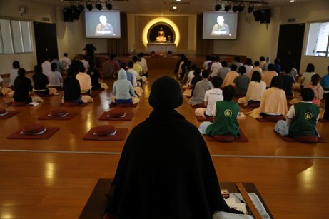 和法鼓山的因缘起源于2012年的中文初级禅训班。当时的我对于自己的未来感到极度迷茫,内心苦闷,情绪容易波动,我很想为自己的心找一个出口,所以选择学习禅修。报名禅训班后不久,爸爸突然往生,顺势将我推向了学佛这条道路。