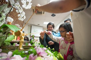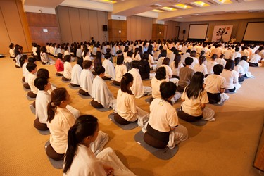 营员都很踊跃的向法师分享在游戏过程里所寻获的宝,如:默契、合作精神、自信心、信任、友情等。而真正的宝藏是什么?外在的宝,来得容易也散得快。常藻法师表示,如不停下脚步,就永远无法深入了解生命的意义,也无法了解和认识真正的自己,让自己变得更好。在探索的过程中虽漫长艰辛,但意义非凡。我们无法像预期那样的活着,也无法掌握人生,但我们可以掌握心态——正面看待事情,放下抱怨,用心转念。在结束以前,法师请大家闭上双眼,让注意力慢慢专注于内心。在法师轻柔的引导声中,大家的呼吸逐渐转为深层而缓慢,进而放松身心。