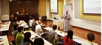 结束了户外活动后,晚上迎来了<与法师有约>环节。开示以前,笑容和蔼可亲的常藻法师即给大家提醒:“其实今晚你们并不是和法师有约,而是和自己有约。问问自己,有多久没有和自己在一起了?”相信法师这句话惊醒了在座的每位营员。在现今的社会里,许多人总是错过了分享快乐的机会,不是因为我们从未发现快乐,而是未曾停下脚步用心去感受快乐。之后,法师把话题带回这次户外营的主题-《山宝寻ME》。