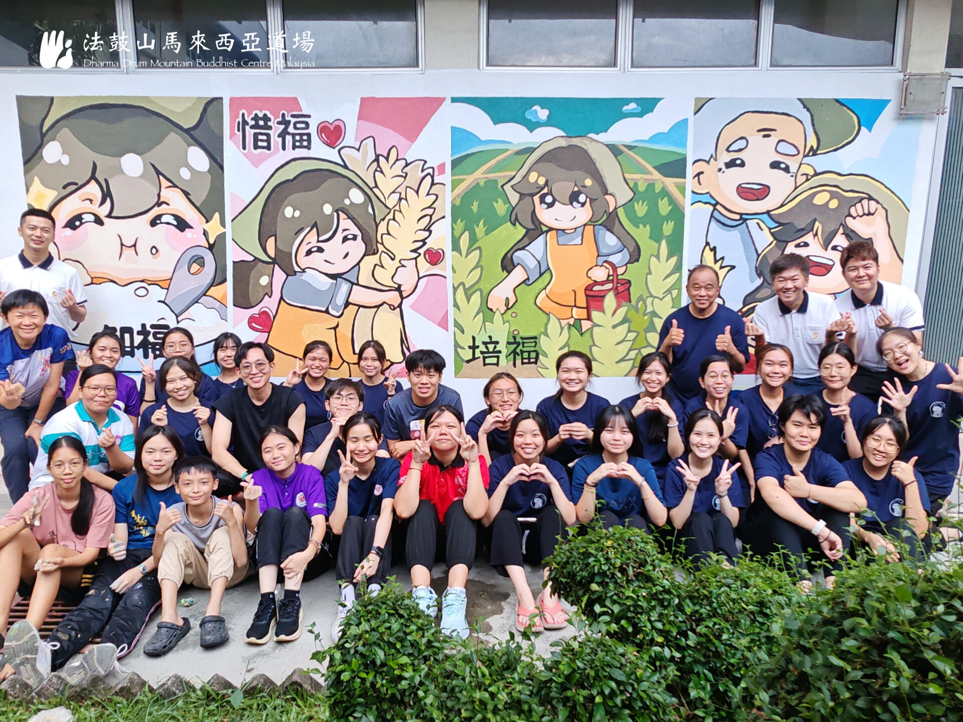 继今年4月13日【墙说四它】在彭亨州甘孟培英华小圆满落幕后,“墙说心五四”计划于11月15日来到位于哥打峇鲁的吉兰丹中华独立中学(丹中)。此次活动由丹州理大佛学会、吉缘坊(丹大佛学会)、彭大慈音小轩佛学会联办,共汇集三所大专院校逾30名大专青年、丹中师生与马佛青丹州联委会的力量,以【墙说四福】壁画将法鼓山创办人圣严法师提出的“四福”:知福、惜福、培福、种福带入校园,成为大家看得见、摸得着、能练习的生活智慧。